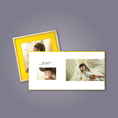 实木相框,高档PU封面,200克高档铜版纸压纹,环保夹层